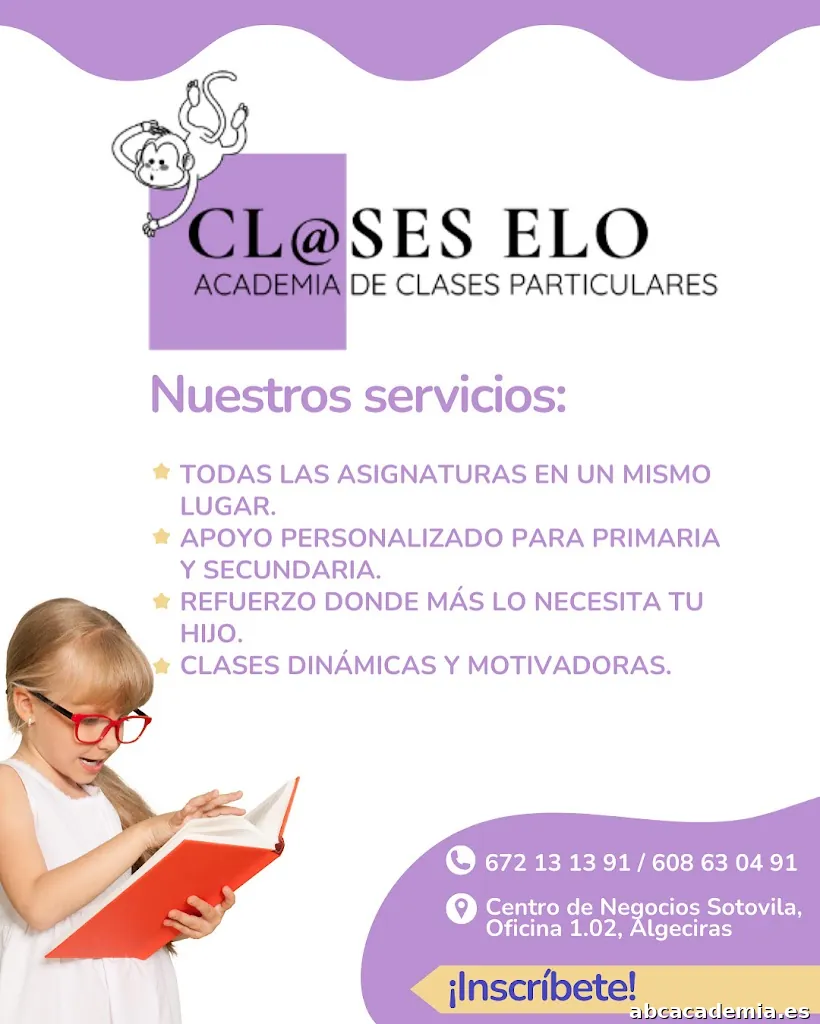 Academia Clases Elo en Algeciras ofrece clases particulares y apoyo escolar en Primaria y Secundaria (ESO). Impartimos todas las asignaturas en un mismo espacio, con profesores cualificados y grupos r...